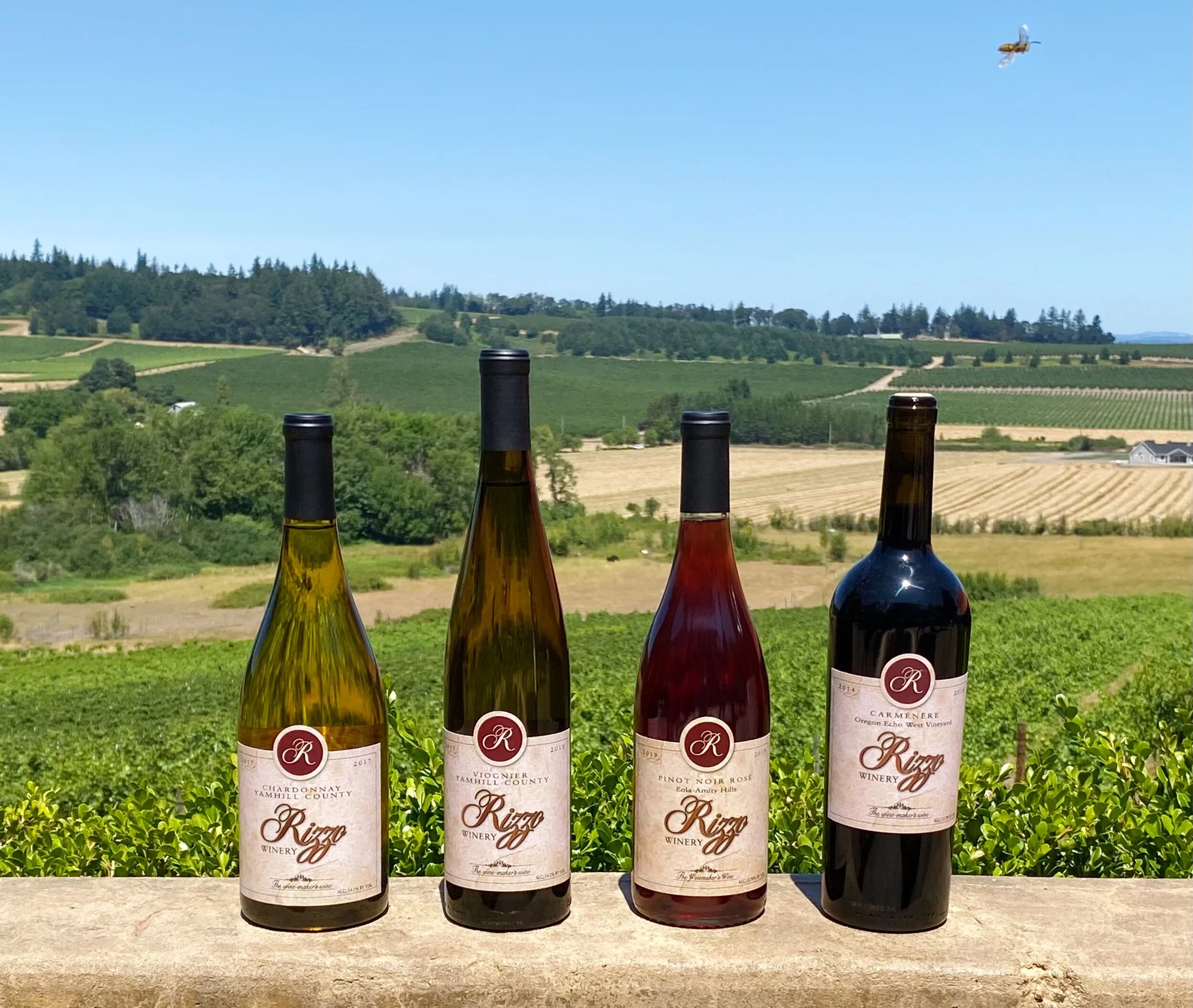 The Rizzo Winery Estate Sampler is an excellent choice for a gift to any wine lover! This gift set covers all the wine bases; red wine, white wine, rosé and even an off-dry white. While tasting through the different styles of wine we make at Rizzo Winery, you’ll also be tasting the essence of our Estate. We have 9 acres of vineyards, in the windy Eola-Amity Hills, where Pinot Noir, Muscat, and Viognier grow harmoniously together. These vineyards are sustainably dry-farmed and follow organic growing principles. The windy vineyard site also allows for these vines to be naturally more disease-resistant.